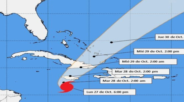 En las próximas 24 horas este sistema continuará su lento movimiento hacia el oeste inclinando gradualmente su trayectoria al norte y nordeste, desplazándose por los mares al sur de Jamaica, para transitar muy cerca o sobre esta isla. El huracán Melissa estará aproximándose desde el martes al territorio nacional por los mares al sur de la región oriental de Cuba, donde progresivamente se irán deteriorando las condiciones meteorológicas.