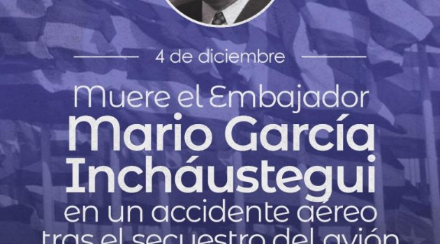 García Incháustegui y su esposa, Gladys Delgado, fallecieron en un accidente aéreo el 4 de diciembre de 1977 mientras viajaban a Malasia, donde el diplomático era embajador concurrente.