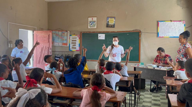 ¿Saben qué es la IA? Esta fue la pregunta para iniciar el intercambio con niñas y niños de la Escuela Primaria Ignacio Agramonte en Cienfuegos. La atención fue automática y la respuesta generó que la mayoría levantara la mano para responder, todos coincidieron en el término que hace referencia a la Inteligencia Artificial.