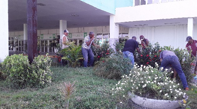 De aporte súper valioso calificó estas acciones la Dra Laydamí Rodríguez Amador, jefa del servicio de Medicina Interna en el centro, quien esta mañana cambió su bata médica por ropa apropiada para las labores de higienización y fue una más entre los convocados.