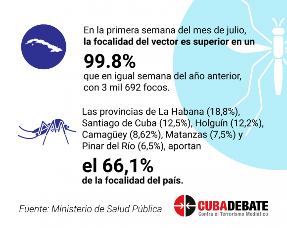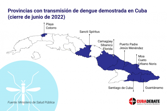 De acuerdo con datos del Ministerio de Salud Pública, al cierre del mes de junio, las provincias con transmisión de dengue demostrada en el país han sido La Habana, Sancti Spíritus, Camagüey, Las Tunas, Holguín, Santiago de Cuba y Guantánamo.