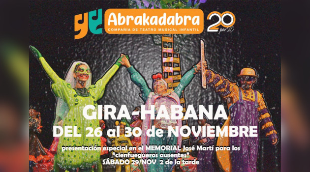 La Compañía de Teatro Musical Infantil Abrakadabra se alista para festejar sus 20 años de fundada el próximo 3 de diciembre, un aniversario que rinde homenaje a las casi seis generaciones de niños cienfuegueros que han formado parte de este proyecto cultural.