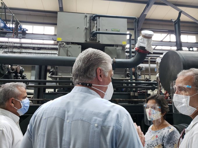 El Primer Secretario del Comité Central del Partido y Presidente de Cuba, Miguel Díaz-Canel Bermúdez, comprobó hoy las acciones que se ejecutan para recuperar la producción en la planta de oxígeno medicinal en el municipio capitalino de Cotorro.