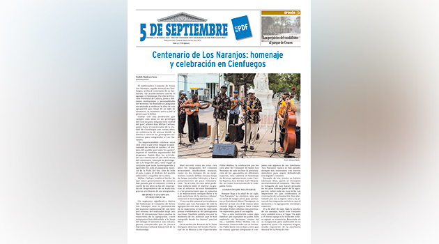 La edición semanal del periódico 5 de Septiembre está disponible para su descarga en formato PDF. En sus ocho páginas encontrará una selección de contenidos sobre la actualidad de la provincia de Cienfuegos.