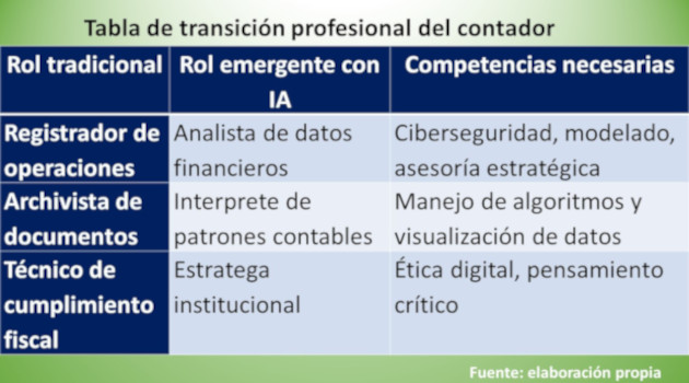 Aceptar el cambio con valentía significa reconocer que el contador ya no será solo registrador, sino intérprete, analista y estratega. Aferrarse a métodos obsoletos es condenar a la profesión a la obsolescencia. La transición exige desaprender y reaprender: adquirir competencias digitales, conocimientos de ciberseguridad y habilidades de asesoría estratégica. En este sentido, la IA no reemplaza al contador, sino que amplifica su capacidad de análisis y decisión, convirtiéndolo en un actor clave de la gestión moderna.