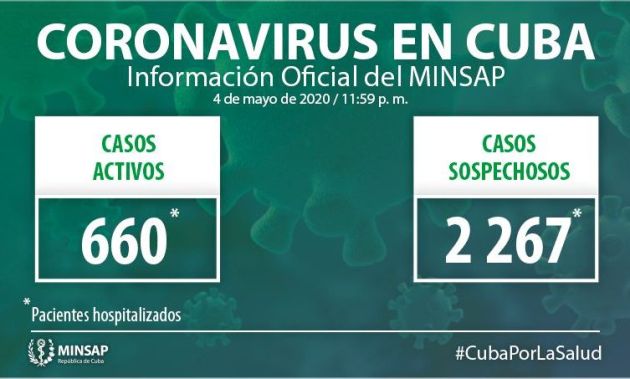 Al cierre del lunes 4 de mayo, Cuba reportó 17 nuevos casos positivos a la COVID-19 para un acumulado de 1685 personas confirmadas con el SARS-CoV-2. También se dio a conocer que han ocurrido 78 altas médicas, informó este martes en conferencia de prensa el doctor Francisco Durán García, director nacional de Epidemiología del Ministerio de Salud Pública (Minsap).