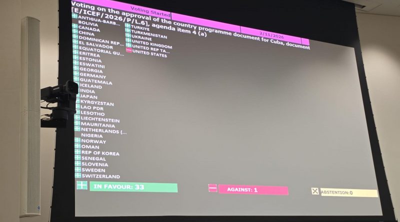 Precisó que este miércoles Cuba presentó el Programa País Cuba-Unicef 2026-2030, que resultó aprobado con un único voto en contra: el de Estados Unidos.