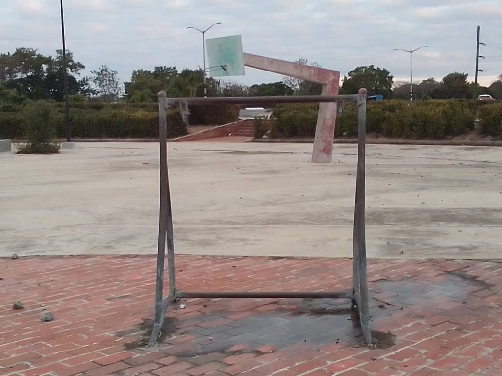 Escudados en la impunidad, malhechores comunes atentan contra los bienes allí instalados, propiedad estatal al servicio de la comunidad circundante y pueblo en general. El robo de traviesas, de lozas y lámparas alrededor de la escultura central es parte de la normalidad del sitio patrimonial. Véase el hurto de las molduras verticales del anfiteatro y se entenderá el grado de arbitrariedad imperante. Una mecedora doble hubo de ser retirada para su resguardo, queda su marco como vestigio del intento de saqueo.