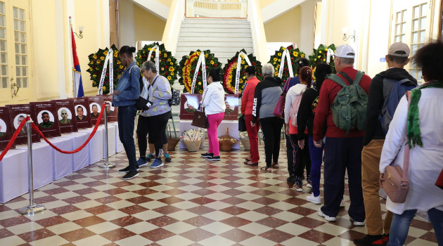 En otra jornada de patriotismo desbordado, Cuba y ahora en Cienfuegos continúa el tributo a sus 32 hijos caídos en el cumplimiento sagrado deber de defender la soberanía de una nación hermana. Lo hicieron decenas de miles de capitalinos bien temprano en Marcha del Pueblo Combatiente a lo largo del malecón habanero, mientras que en Cienfuegos, como en todo el país, inició a las 9:00 el homenaje. Honor y Gloria. Cuba Honra
