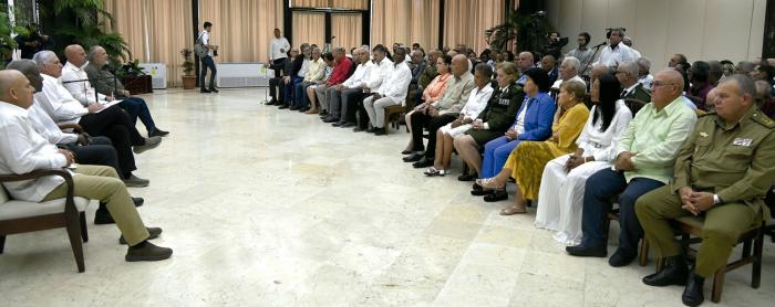 Según la cuenta en x de la Presidencia, en vísperas del 1ro. de Mayo tuvo lugar esta reunión en el salón de protocolo El Laguito, donde se compartieron historias de quienes han hecho de la resistencia y la creatividad una máxima de vida en sectores como salud, cultura, educación, energía, turismo, y otros.