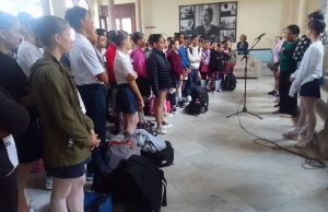 El acto principal de esta expresión de solidaridad contó con la participación de estudiantes y profesores de la centenaria institución, entre quienes se encontraban, Martha Ulloa y Niurka González miembros del Consejo de Dirección del Cneart, y Julio César Pérez Moracén, director del afamado centro, otrora Academia de Bellas Artes “San Alejandro”.