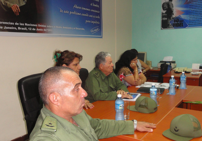 En Cienfuegos, el general Pardo Guerra participó de un encuentro con el Consejo de Defensa Provincial, durante el cual intercambió con varios de los subgrupos que lo conforman. En particular, conversó con Jesús Rey Pérez, director de la Empresa Eléctrica, interesado en la situación de los postes del tendido en la carretera del Circuito Sur, quién lo actualizó sobre soluciones técnicas para evitar la caída de otrora.