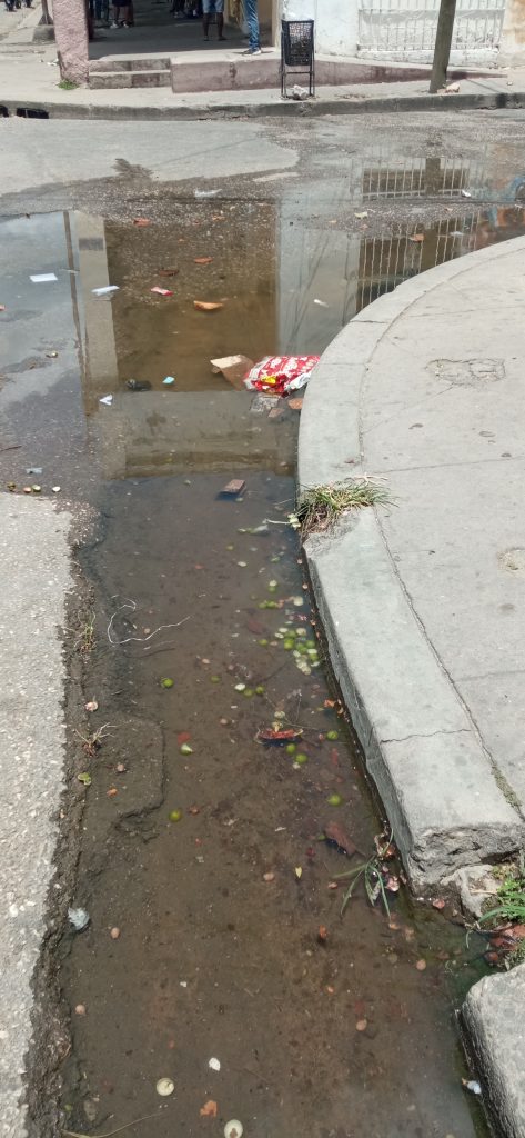 Como daño colateral de la avería queda a su lado un lodazal de varios metros cuadrados, que nunca se llegó a cubrirse de asfalto u hormigón y ello dificulta el paso de peatones y automóviles por en esa intersección.