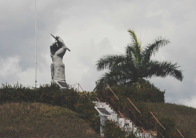 Más allá, como hongos blancos sobre el terreno, se extienden las estructuras de las vaquerías, ejemplos cercanos del floreciente vínculo de los campesinos y agricultores con la tierra durante los albores de la década del 70 del pasado siglo. A su vez, la vista se nos pierde entre los recovecos del macizo de Guamuhaya; un paneo que va descubriendo poco a poco caseríos y pueblitos distantes como Abra de Castellón, el Jíbaro, la Jutía, Barajagua, el Tablón o la Cidra. Y justo al suroeste, la urbe de Cumanayagua, que parece como dormida con el abrazo que le ofrecen los ríos Arimao y Hanabanilla.