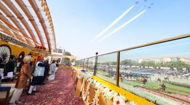 El acto central de las festividades fue un tradicional desfile que combinó una exhibición de poderío militar y la vibrante cultura de India, llevado a cabo en el bulevar de Kartavya Path, en el centro de Nueva Delhi. La demostración de fuerza militar dio paso a un gran despliegue cultural con 2.500 artistas de todo el país, que actuaron ante unos 10.000 invitados.