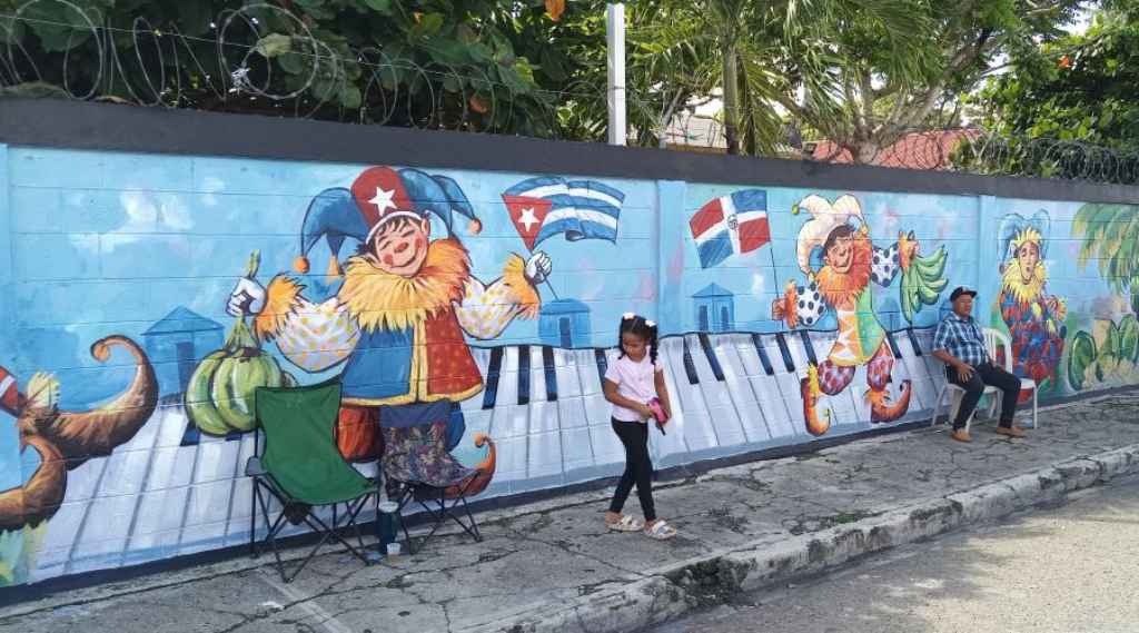 En el pabellón de Cuba, las banderas de ese país y de la República Dominicana reafirman las históricas relaciones entre dos pueblos hermanos. Murales y obras de los artistas visuales cubanos Sándor González Vilar, Maikel Muiño y Arian García rinden homenaje a su tierra natal.