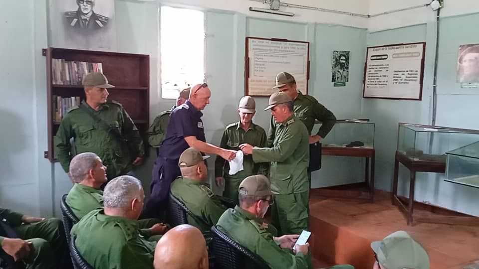 Como parte del programa, visitaron la Unidad de Estudio “José González Guerra”, donde en la sala de historia rememoraron la heroicidad de la lucha contra bandidos* en las Montañas del Escambray. En un gesto simbólico, el Capitán de flotilla Gustavo Castellón González, hijo del destacado combatiente Gustavo Castellón Melián (conocido como El Caballo de Mayaguara), donó objetos personales de su padre, que representan su legado en la lucha contra las bandas contrarrevolucionarias.