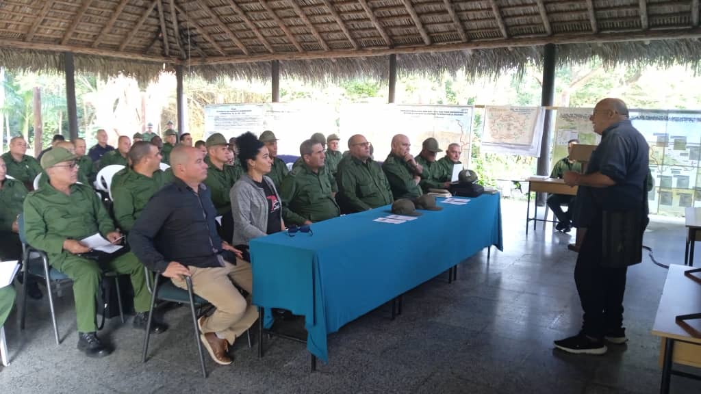 Los participantes realizaron actividades prácticas, entre las que destacó la caracterización del área de actuación, explicada por el Coronel Yasdiel Quezada Melián, jefe de la brigada en el territorio cienfueguero, quien detalló las principales acciones que ejecutan estas unidades en la defensa del terreno. Desde una base combativa, demostró además el procedimiento de una emboscada ejecutada por una pequeña unidad de infantería.