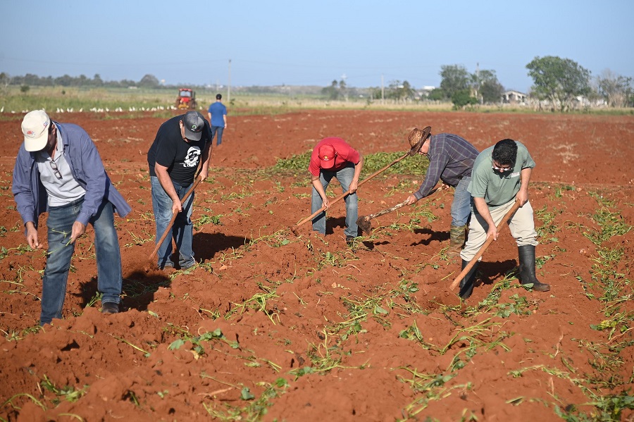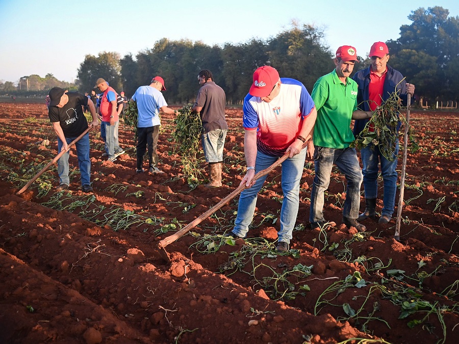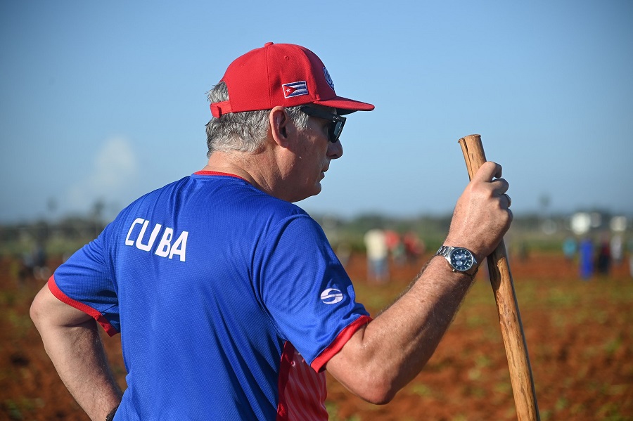 En el surco y bajo el sol, estuvo el Primer Secretario del Comité Central del Partido Comunista y Presidente de la República, Miguel Díaz-Canel Bermúdez, compartiendo con cubanos de diferentes generaciones que, frente a la adversidad y las complejidades de la situación económica, apuestan por el impulso de las labores agrícolas para lograr la imprescindible soberanía alimentaria que necesita el país en tiempos difíciles.
