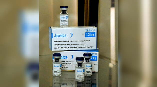 A partir de esos resultados pasamos a las investigaciones clínicas Fase 2, pero cuando estábamos en ella, llegó la pandemia de COVID-19. Entonces –relata-, una de las alternativas que se utilizó para el tratamiento de las formas graves y críticas de estos pacientes fue Jusvinza, que en ese momento nuestro pueblo lo conoció con el código CIGB-258.