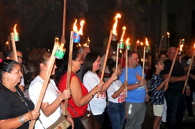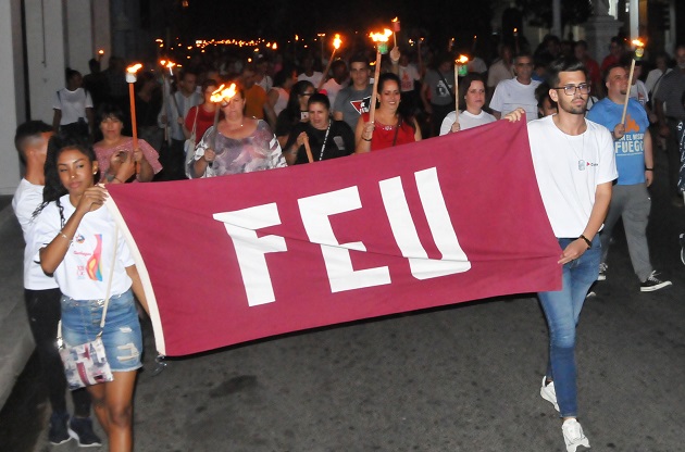 Inspirados en la Generación del Centenario, iniciadora de esta tradición, cientos de jóvenes desfilaron con antorchas encendidas por las arterias del Paseo del Prado más largo de Cuba, rumbo a la Plazuela de la Juventud, cerca del Muelle Real.