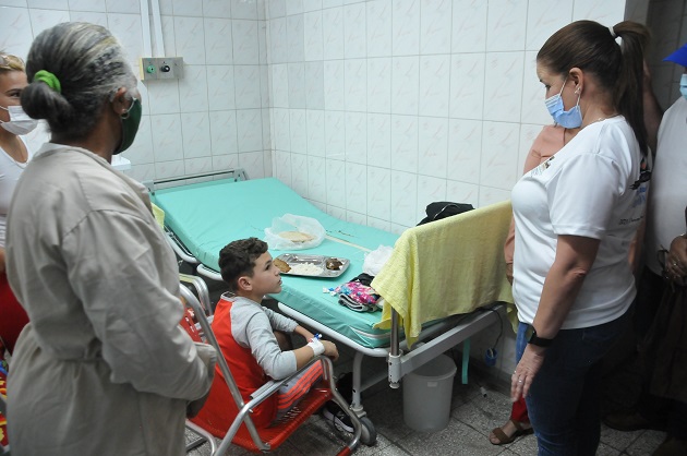 El colofón del periplo estuvo en el Hospital Pediátrico Paquito González Cueto, donde los visitantes supieron del aseguramiento de los recursos humanos y logísticos para estos días de festividades. En el encuentro con niños ingresados y madres acompañantes en la sala de Hematología, los dirigentes escucharon, por unos y otras, del agradecimiento y la satisfacción por el trato y las atenciones de que han sido objeto.
