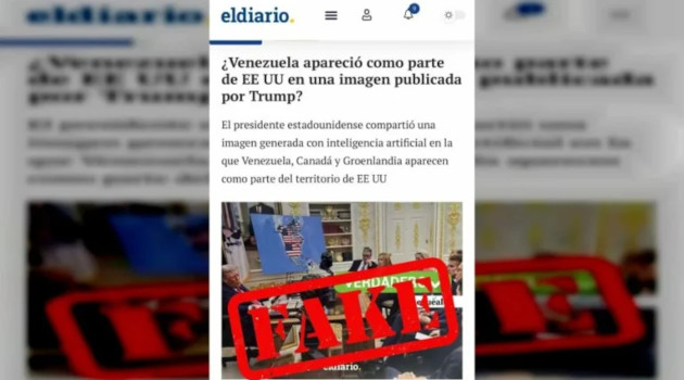 El Gobierno de Venezuela desmintió este martes 20 de enero una imagen que habría sido publicada por el presidente de Estados Unidos, Donald Trump, en la que el territorio venezolano aparece cubierto por la bandera estadounidense. A través de la cuenta en la red social X de «Miraflores al Momento», calificaron la pieza como un material “fake” (falso) generado con Inteligencia Artificial (IA).