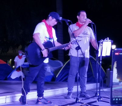 La reconocida agrupación Buena Fe, y los cantautores Ray Fernández, Arnaldo Rodríguez y Annie Graces sumaron sus voces a la iniciativa denominada Sentada de los Pañuelos Rojos, que incluyó descargas, conciertos, lecturas de poesía, proyección de documentales y presentaciones de libros.