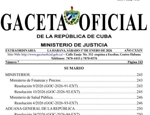 El Ministerio de Finanzas y Precios (MFP) oficializó la prórroga de la exención arancelaria para la importación no comercial de productos esenciales. La disposición fue publicada en la Gaceta Oficial de la República, Edición Extraordinaria No. 17 del 17 de enero de 2025, mediante las resoluciones 9 y 10 del citado organismo.