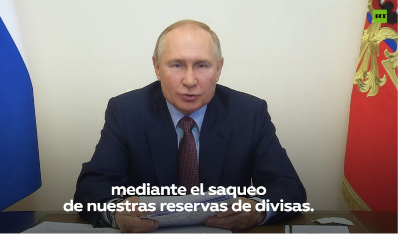 Durante una reunión del Consejo de Desarrollo Estratégico y Proyectos Nacionales, el mandatario ruso afirmó que los países occidentales tenían intención de “derribar la economía” del país en un corto periodo de tiempo mediante “el saqueo de sus reservas de divisas”, colapsando su moneda nacional y provocando una inflación devastadora. Sin embargo, este plan, “como todo el mundo puede ver, no funcionó”.