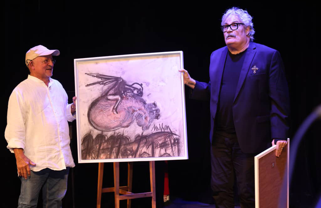 Uno de los momentos más emotivos fue cuando Alpidio Alonso Grau, ministro de Cultura, e Indira Fajardo, presidenta del Instituto Cubano de la Música; pusieron en manos del artista el certificado del Premio Nacional de Música, acompañado de un cuadro de Nelson Domínguez, Premio Nacional de Artes Plásticas en 2009, y una obra de manos de la también Premio Nacional de la especialidad en 2019, Lesbia Vent Dumois, en nombre de la Unión de Escritores y Artistas de Cuba (UNEAC), ambos artistas presentes sobre el escenario para el agasajo.