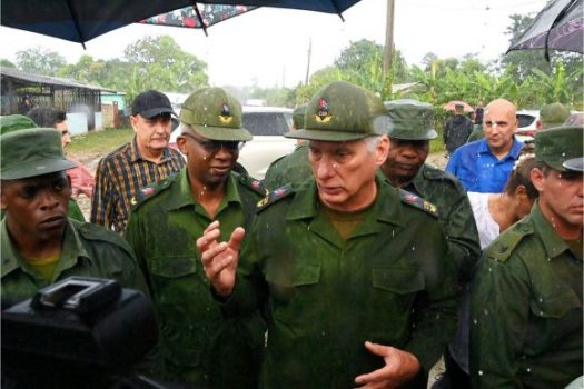 Luego Díaz-Canel se trasladó a Sagua de Tánamo, otro de los municipios holguineros golpeados por la furia del huracán. Estuvo en el puente sobre el río Sagua, que resistió la gran crecida, pero donde colapsaron tres pozos de agua, ubicados en sus márgenes.