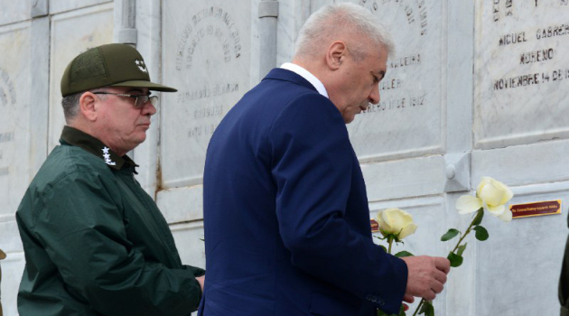 Ante el Mausoleo a los Bomberos en la Necrópolis de Colón, en La Habana, depósito una ofrenda floral en recordación al coraje y sacrificio de los caídos en acto político en el que estuvo acompañado por su homólogo cubano, General de Cuerpo de Ejército Lázaro Alberto Álvarez Casas, otros jefes militares, la delegación visitante que encabeza, Viktor V. Koronelli, embajador ruso en Cuba, y parte del cuerpo diplomático.