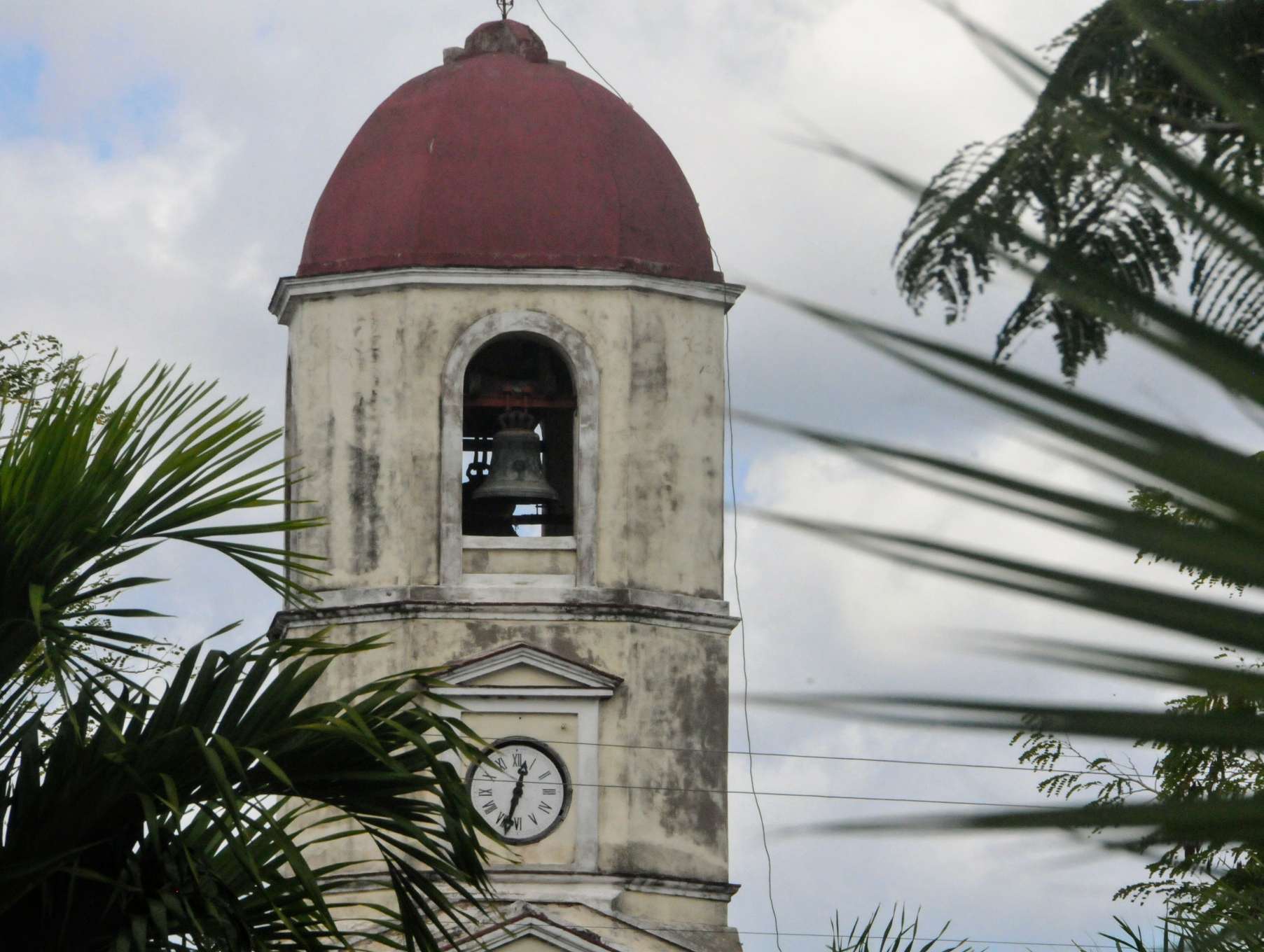 De acuerdo con las pesquisas realizadas allí por el investigador David Liestter Martínez Ramos, la edificación se enorgullece hoy día de sus seis campanas fundidas en bronce, cuatro en funcionamiento y dos conectadas a la maquinaria del referido reloj que dan los cuartos de hora. “La ubicada al este se halla en la fachada principal, de frente al parque. Tiene 74 centímetros de diámetro e igual dimensión en altura. Posee seis asas con cabezas antropomorfas, un cordón en el hombro, en el tercio dos cordones y una trabajada cenefa.