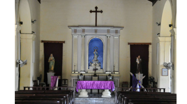 El santoral con todas las efigies que alberga la parroquia parece vibrar con cada repique, y si usted se halla dentro del recinto cuando esto sucede, puede incluso notar algún susurro que viene de la imagen del “Lusitanus”, quien fuera muy popular entre los católicos por su prédica feraz.