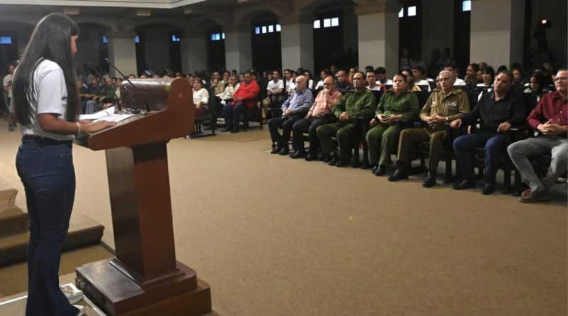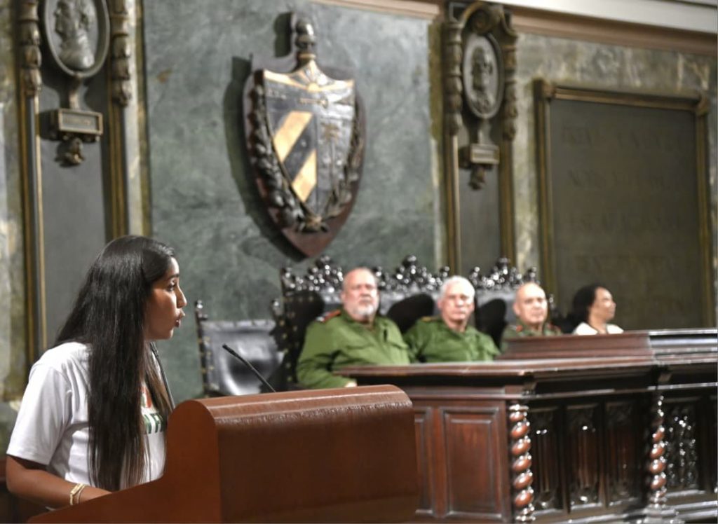Rememoró la valiente expresión de confianza de Fidel en las nuevas generaciones, cuando «nos dijo que nuestros enemigos históricos jamás podrían destruir la Revolución, pero nosotros sí»; y que lo hizo «desde el convencimiento y la fe en la victoria, contando con el principal ejército que siempre ha tenido la defensa de la obra revolucionaria: el pueblo, y dentro de este, la juventud cubana».