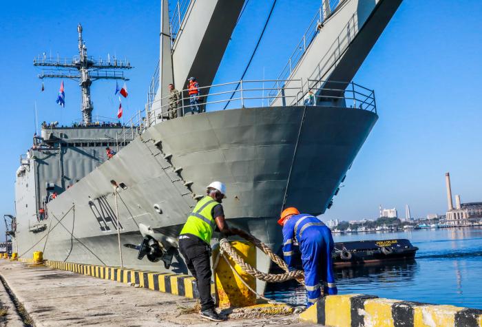 En dos buques de la armada de México llegó hoy al puerto de La Habana un cargamento con más de 800 toneladas de ayuda material enviada por el Gobierno de la nación de norteamérica, por instrucción de su presidenta, Claudia Sheinbaum.